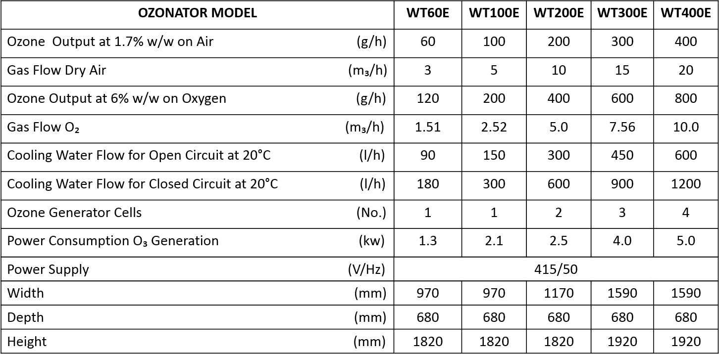 efficient ozone generation and a high degree of automation. E Series ozonators are available with Oxidation Reduction Potential (ORP) controls featuring microprocessor feedback functions.